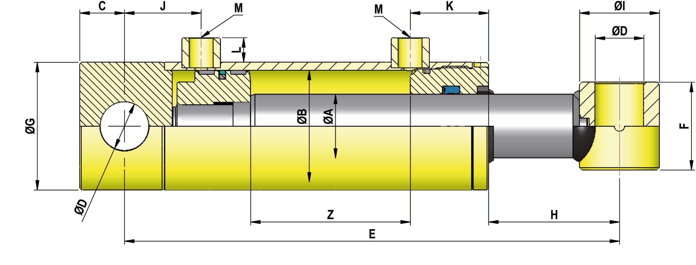- Doppeltwirkender Hydraulikzylinder mit Schwenkaugenbefestigung
