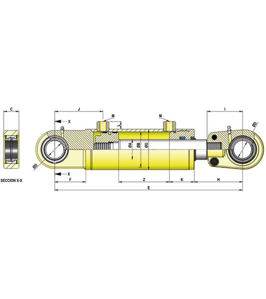 - Doppeltwirkender Hydraulikzylinder mit Gelenkaugenbefestigung