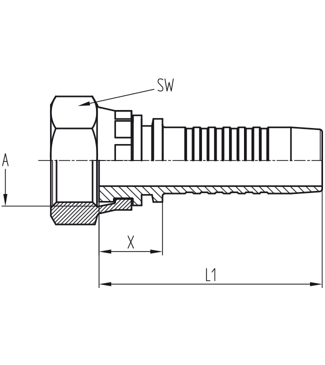 BSP sealing head, union nut with BSP thread, flat sealing