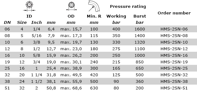 Applicable specifications: EN 853 2SN - ISO 1436 Type 2 - SAE 100R2AT
