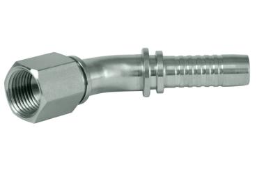 JIC threaded adapter, 74 ° cone with union nut, 45° elbow, UN / UNF thread