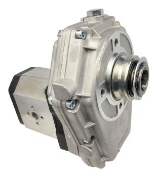 This P.T.O. shaft gear box is equipped with a hydraulic pump (gear pump).