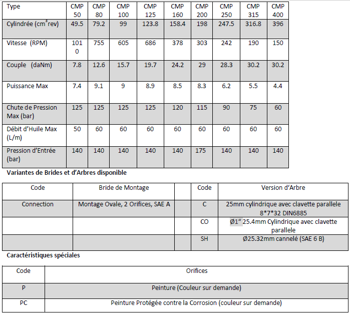 Page d'accueil » Moteurs hydrauliques » M+S Moteurs hydrauliques à huile » Série P » Moteur Hydraulique, M+S, CMP250COD