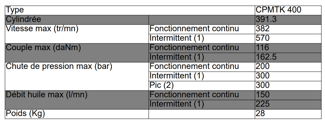 - Cylindrée: 400 cm3/tr