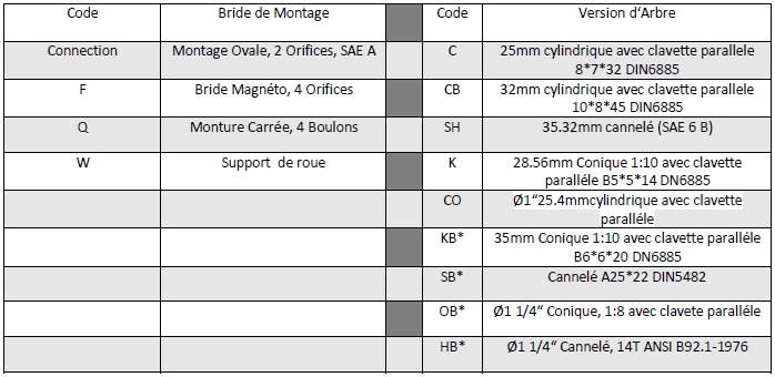 - Arbre: Ø 32 mm Cylindrique avec Clavette A10 x 8 x 45