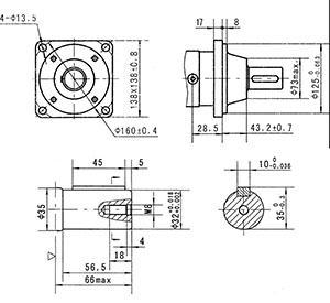 - Arbre: Ø 32 mm Cylindrique avec Clavette A8 x 7 x 28