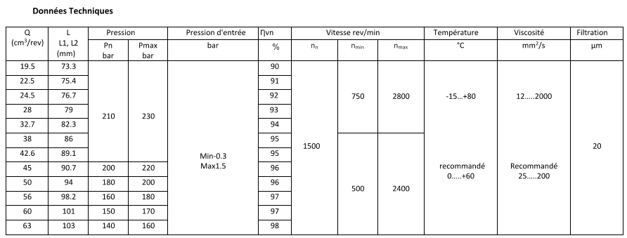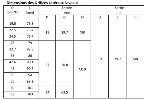 - Cylindrée Niveau 2 sélectionnable de 4 à 27,9 cm³/tr