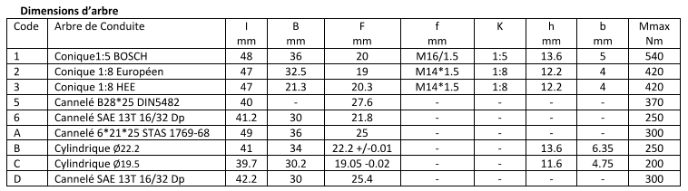 | Bride Frontale 4 | Arbre de sortie Type 2 | Connexions latérales